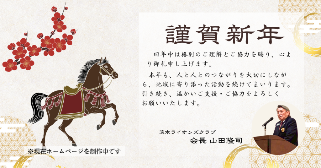 会長を担える資質が有るとは思っておりませんが、次年度ガバナー排出クラブとなる今、少しでも茨木ライオンズクラブがより良く、その大役にふさわしいクラブに前進できるように会長として頑張る所存です。